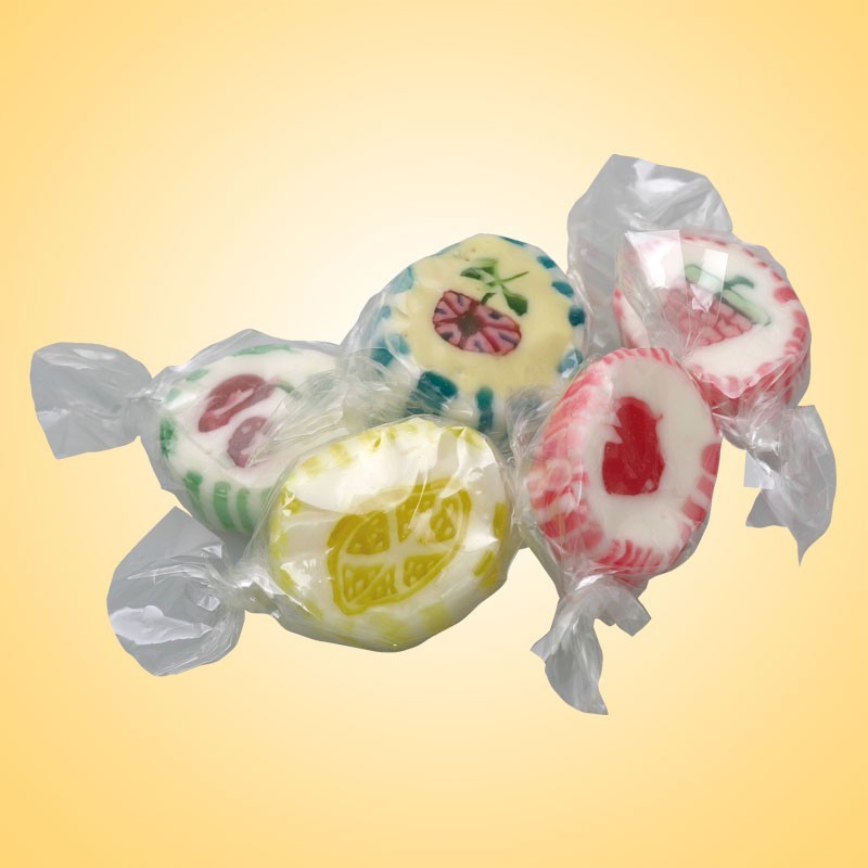 Složení: cukr, glukózový sirup, kyselina citronová, aromata, barviva E100,